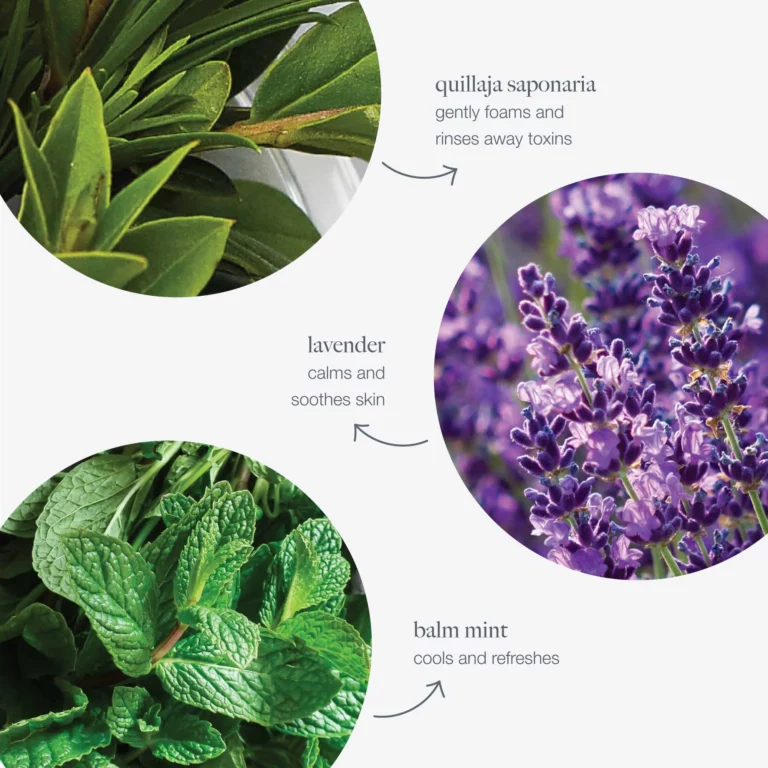 “Soap-free, foaming gel cleanses all skin conditions. Refreshing lather thoroughly removes impurities, without disturbing the skin’s natural moisture balance. Lightweight and mild enough to use every day, it also features calming Balm Mint and Lavender extracts to soothe the skin.”