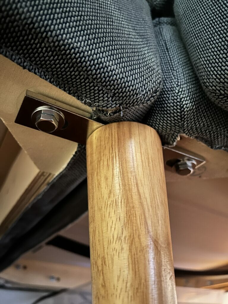 What I did which is the incorrect way was to just thread the wooden leg right onto the leg bracket. This is kind of a stupid way to do it since the threads on the part from the bracket are meant for metal and the leg is wood, but it actually fits in there well! I’m sure if I tried to use re-use the leg for something else the inside would be all messed up, but so far it’s been fine.