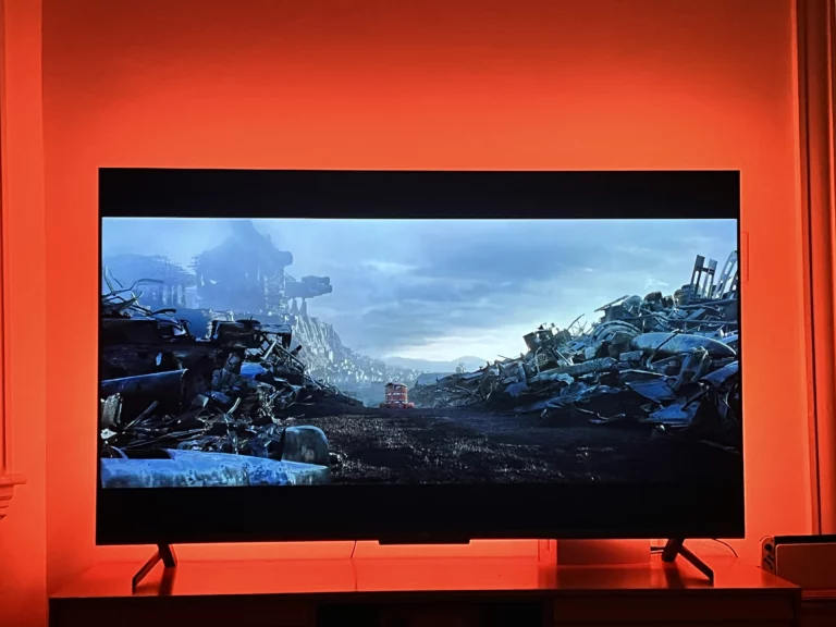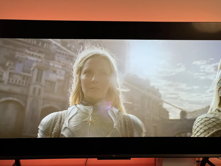 To do a very nontechnical test, I put off watching Amazon’s new Lord of the Rings show: Rings of Power. With my speakers set up, I launched the Prime app from my PS5. Before I even got to the show, wow this TV was vibrant. The colors on this thing really pop, and I was already pumped. Another good sign; I paused the TV on a black screen and left for a minute. When I came back my girlfriend and I both thought the TV was off. It wasn’t, it is just that good at blacks. The show started, and one of the opening scenes is inside a dark icy cave. Even with lights on in the room, we could see perfectly what was happening. When the elves got ambushed by a cave troll (wow this just got nerdy), we both jumped a bit, as the speakers and video were both so good. I paused to change the audio a bit, so that the TV would level the sound a bit better. Immersion is good, but we didn’t want to feel like a giant troll was actually in the house. At one point during the show, I got goosebumps, sealing the deal. This thing looks amazing.